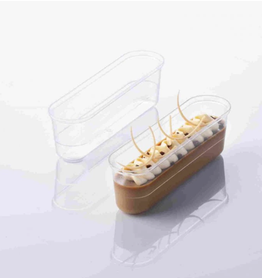Designový oválný kelímek ECLAIR od LKstore je vyroben z pevného průhledného plastu, který krásně zvýrazní vrstvené dezerty, mousse nebo moderní sladké pohárky. Díky svému tvaru je ideální například pro dezerty ve stylu éclair nebo elegantní porce na rauty a oslavy.