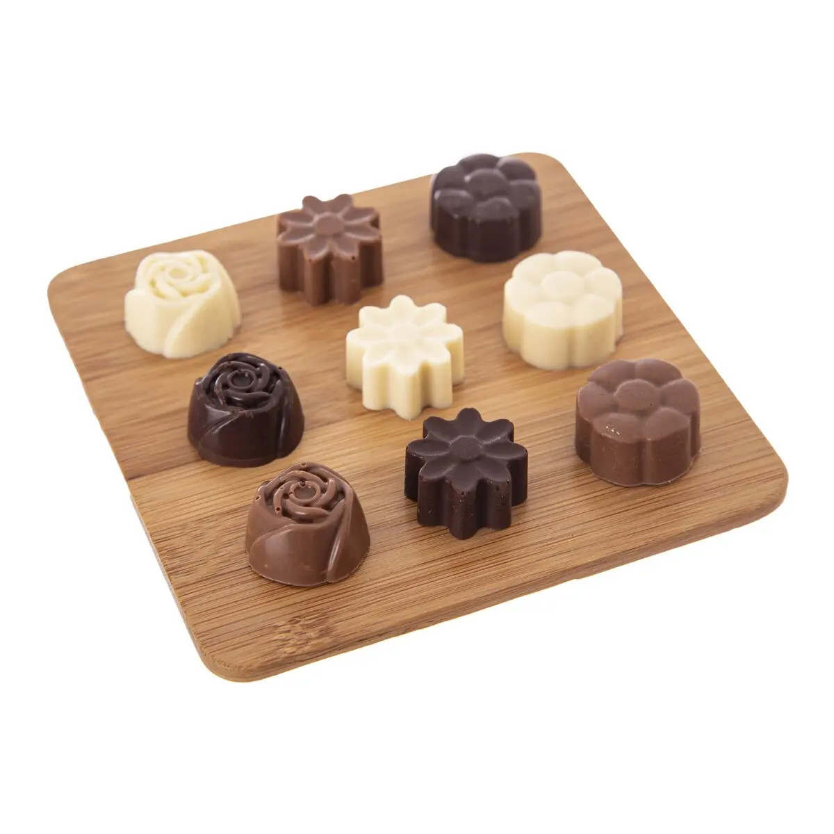 Stačí rozpuštěnou čokoládu nalít, přidat vaše oblíbené ingredience, ořechy, sušené ovoce, sušenou levanduli apod. a nechat ztuhnout v ledničce. Pak je z pružné formy jednoduše vyloupnete. Nebo ji použijte na pečení drobných máslových sušenek ke kávě.
