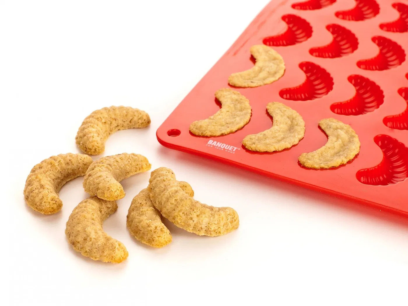Silikonová forma CULINARIA Red od Banquet na 30 ks rohlíčků o rozměru formy 35 x 25 x 1,3 cm. Forma je odolná vysokým teplotám (do 230 st. C) a neváže chutě ani pachy pokrmů. Rohlíčky se k formě nelepí a lze je lehce vyklopit. Forma se snadno udržuje a je vhodná do myčky na nádobí.