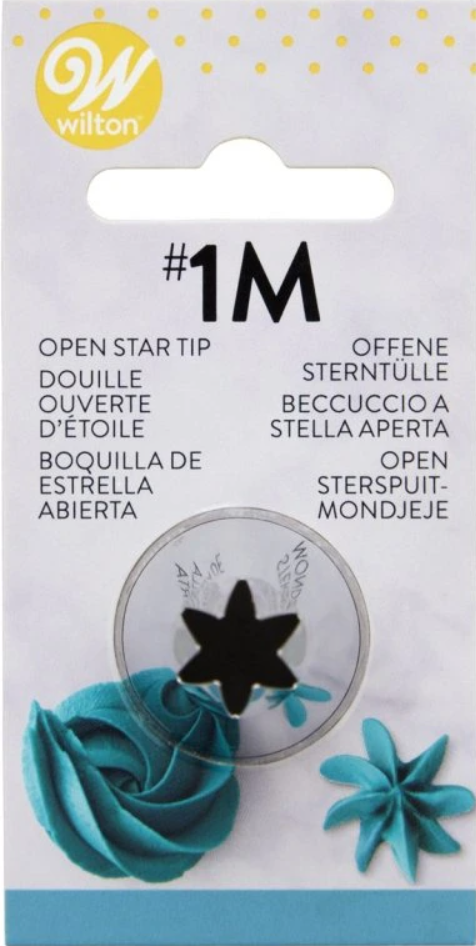 Zdobicí špička Open Star č. 1M – Wilton je klasická otevřená hvězdicová tryska z kvalitní nerezové oceli, ideální pro vytváření bohatých krémových růžic, spirál, hvězd a dekorativních okrajů. Díky svému tvaru patří mezi nejoblíbenější špičky pro zdobení cupcakes i dortů.